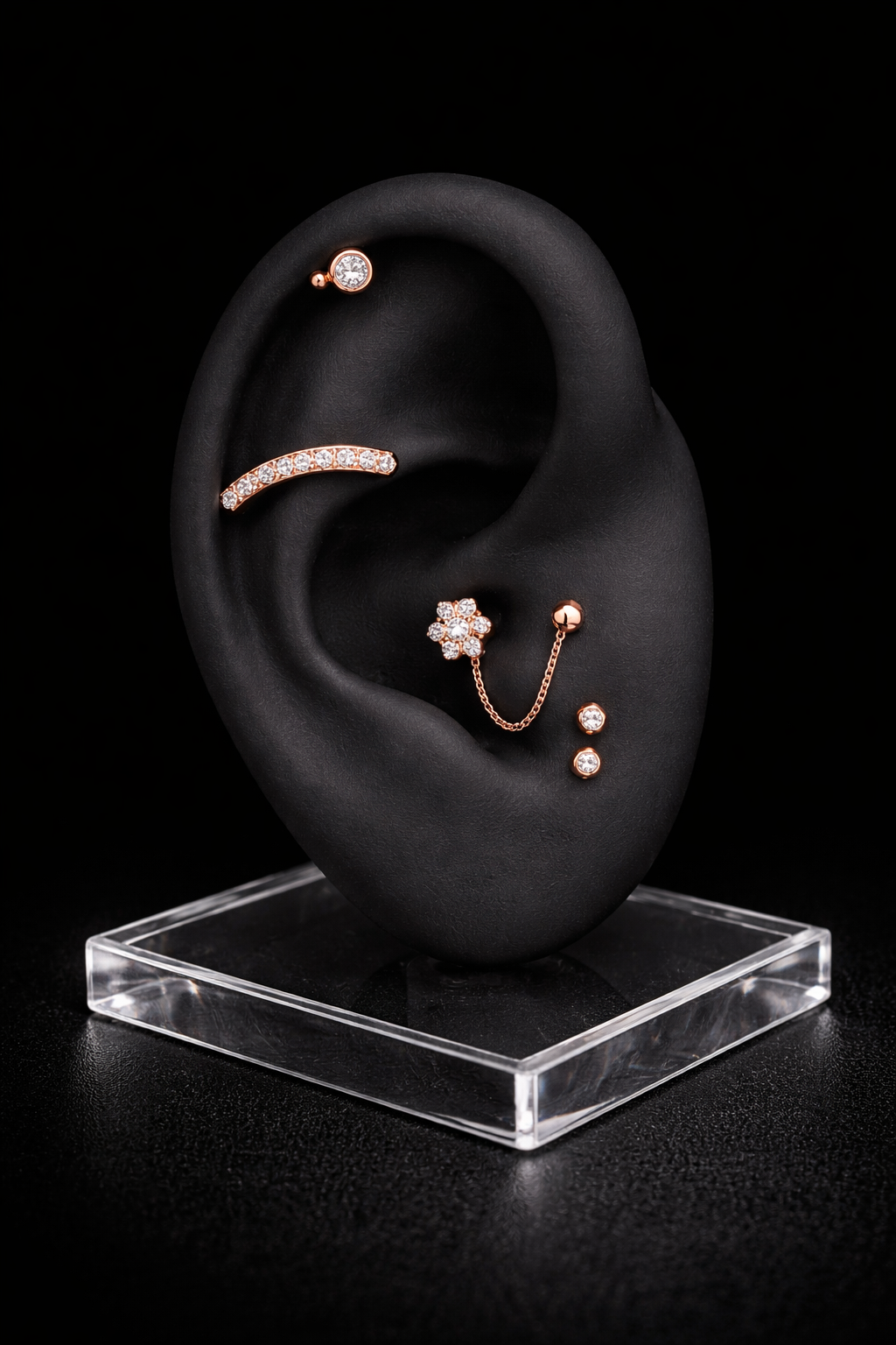 Curated implant-grade pieces selected for comfort, safety and visual harmony.
